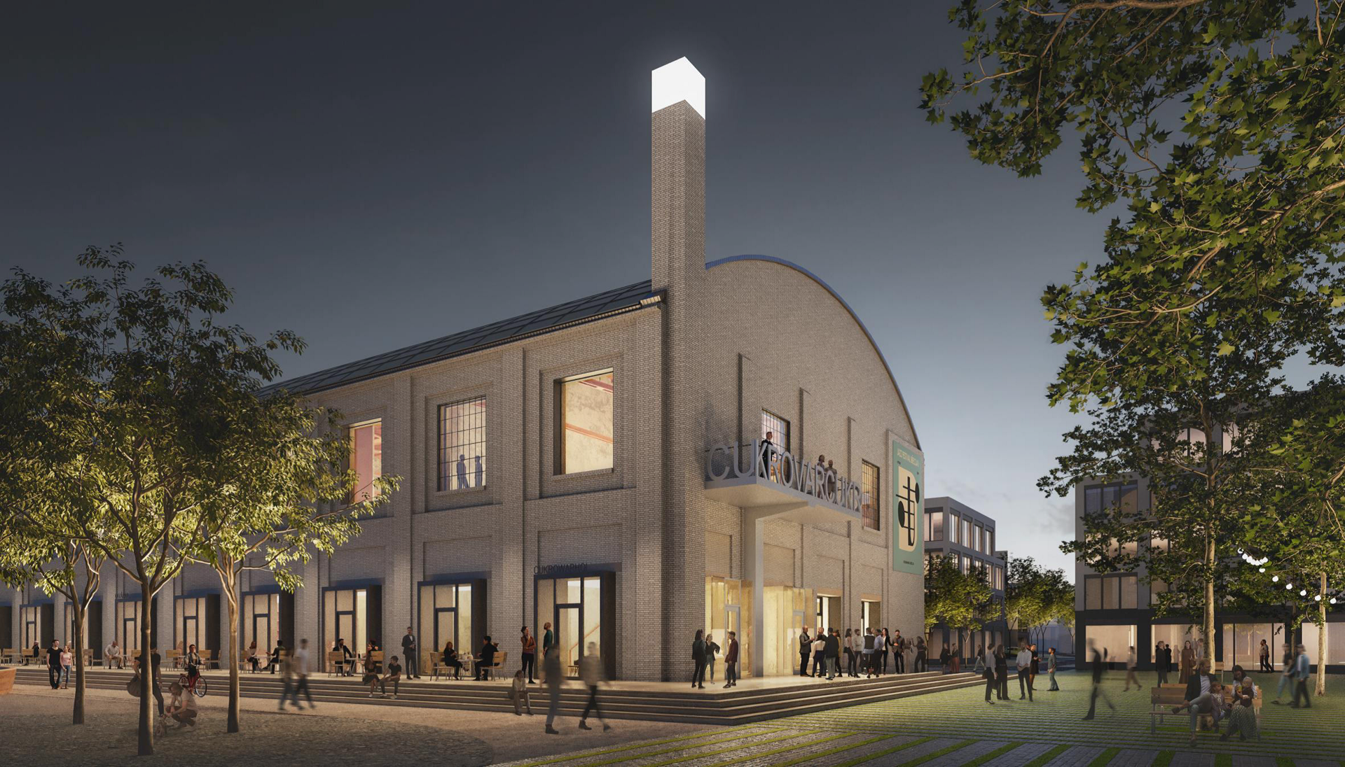 budovy zajišťuje současně úspornost i charakter. Aby návrh neúměrně nezvyšoval investiční náklady a tím v důsledku nezabránil uskutečnění záměru, jsou všechny zadané provozy umístěny do existujícího vnitřního prostoru stavby, tzn. bez jeho zvětšení jakýmkoliv směrem a způsobem. Aby návrh využil atraktivitu svého umístění a vytvořil přitažlivé a vitální místo, jsou všechny veřejné provozy a prostory umístěny podél fasády orientované k řece. Aby návrh využil potenciál historického industriálního objektu jedinečné formy protáhlé lodě s cylindrickou dřevěnou střechou, zachovává její prostorové i materiální působení ve všech důležitých veřejných prostorách, které se do ní otevírají: knihovna, foyer, přísálí i společenský sál.