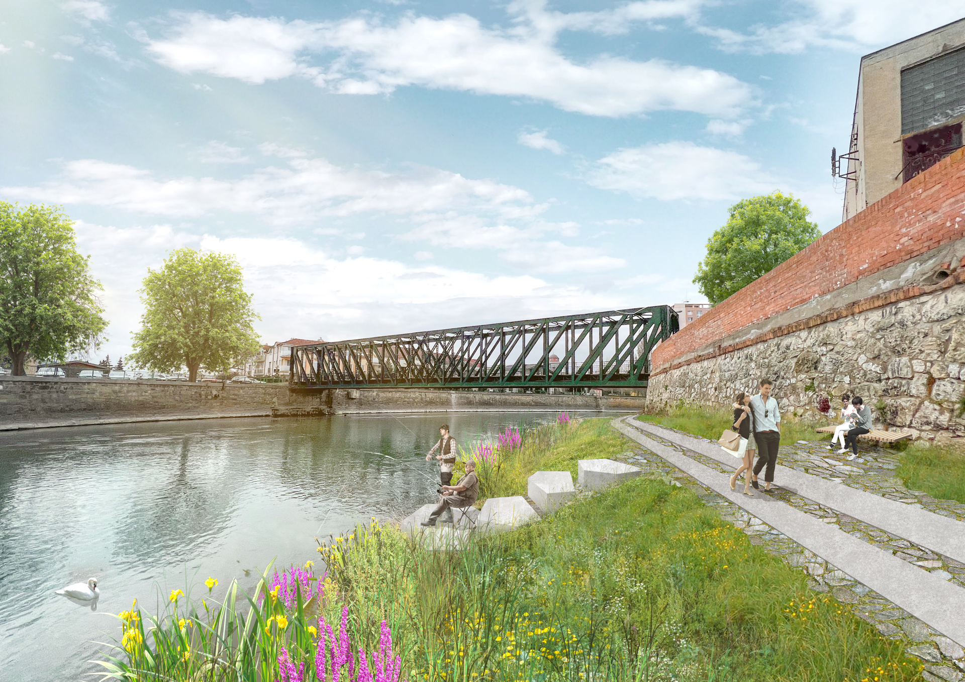 Náplavka u bývalého cukrovaru - studie