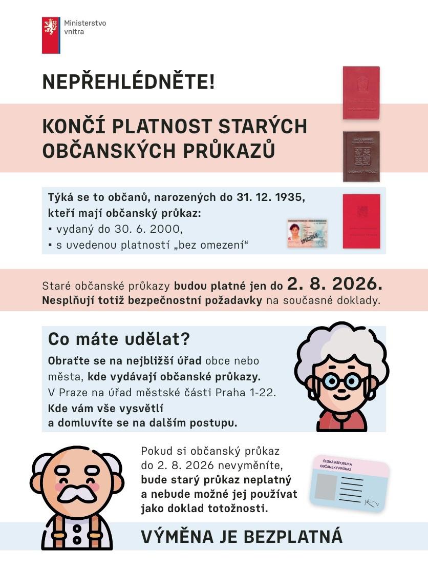 Do 30. 6. 2000 byly občanům narozeným před 31. 12. 1935 vydávány občanské průkazy s uvedenou platností "bez omezení". Protože nesplňují bezpečnostní požadavky na současné doklady, pozbydou platnosti 2. srpna letošního roku.