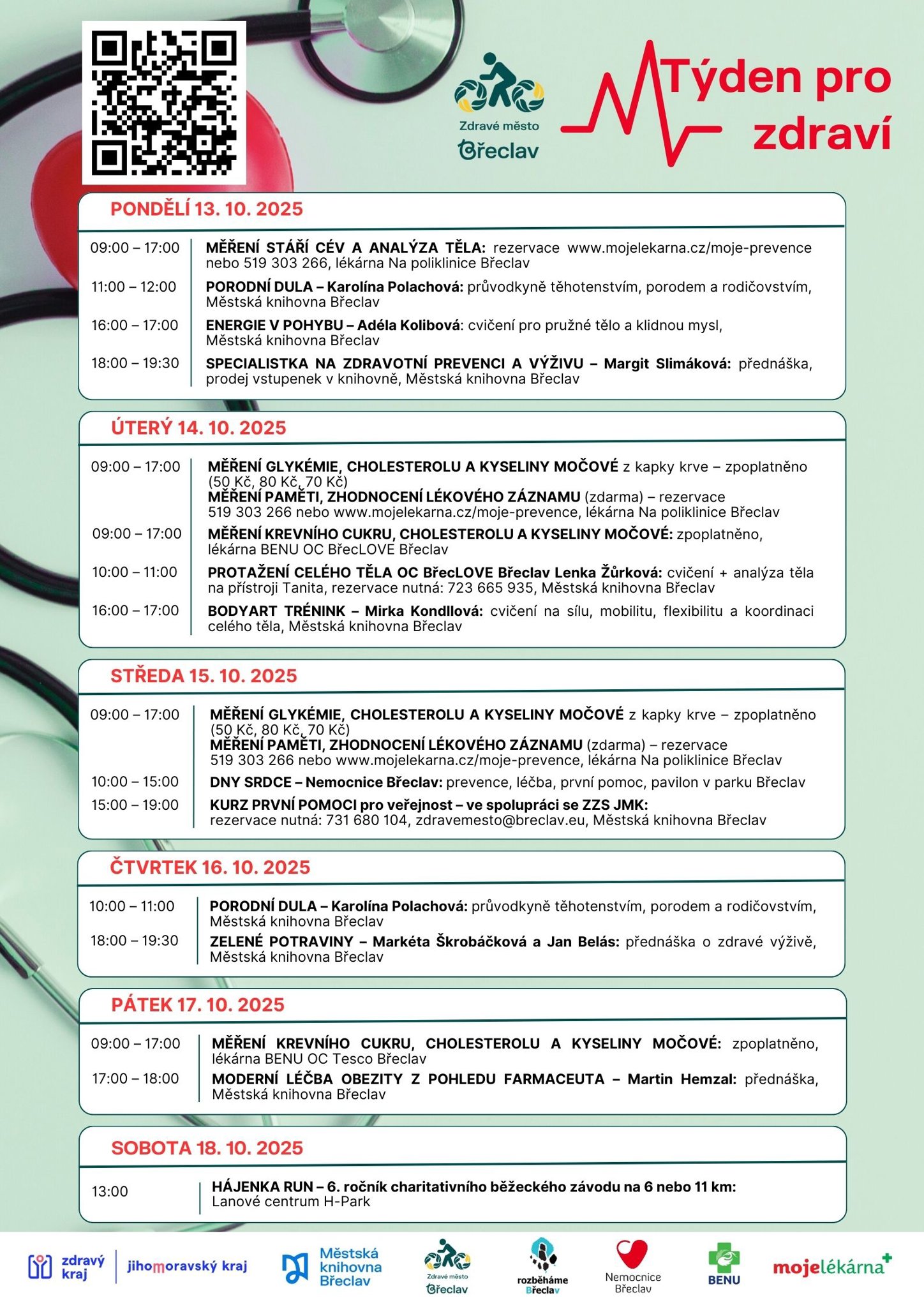 Odborné přednášky, různá měření a aktivity, díky kterým můžete lépe pečovat o sebe a své zdraví.