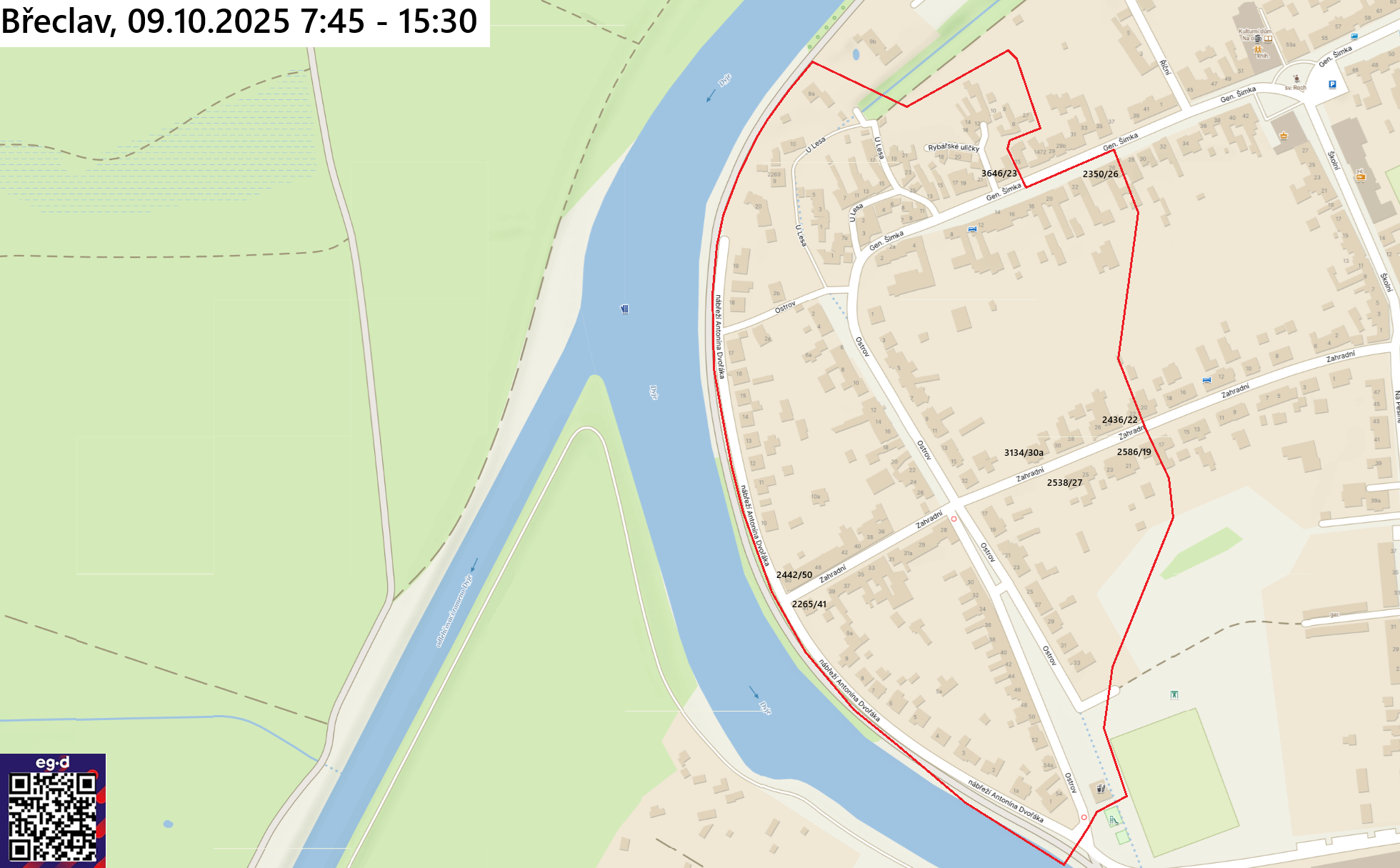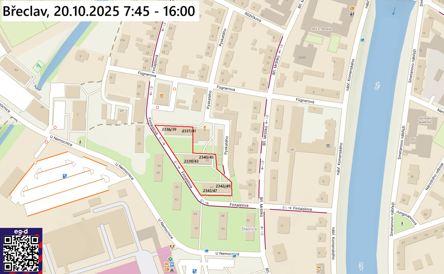Oznámení o přerušení dodávky elektrické energie 20.10.2025 Břeclav, část ul. Fintajslova