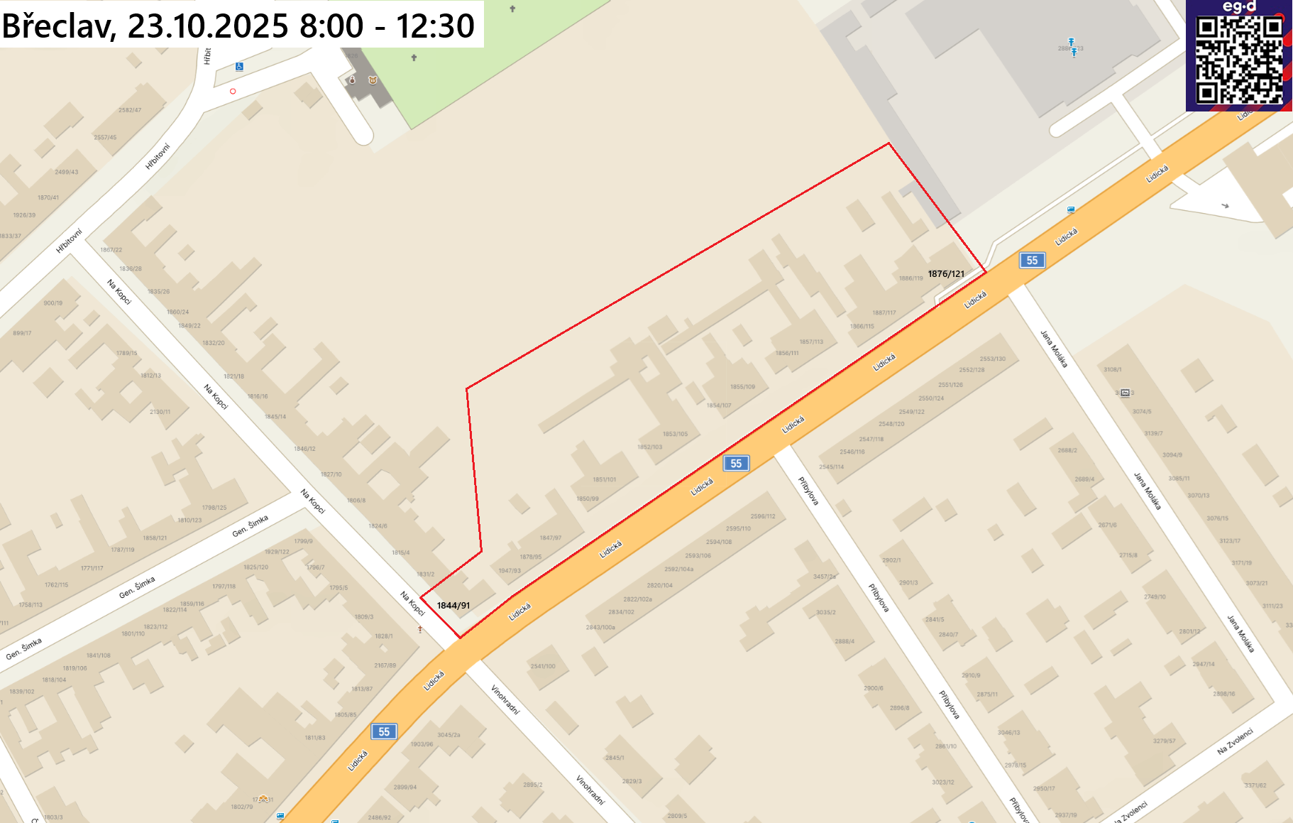 Oznámení o přerušení dodávky elektrické energie 23.10.2025 Břeclav, část ul. Lidická